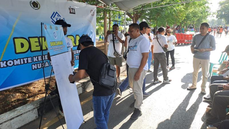Peserta Car Friday ikut berpartisipasi menandatangani Deklarasi KKJ NTT di depan kantor Gubernur NTT, Sabtu (25/5/2024)
