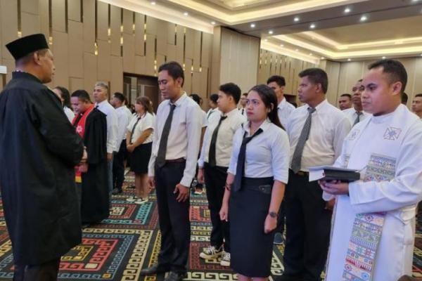 Pelantikan ditandai dengan pengucapan sumpah dan janji didampingi tokoh agama serta pembacaan pakta integritas dan penandatanganan berita acara oleh perwakilan PPS.