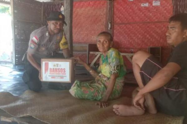 Penyerahan bantuan sosial dari Kapolres Sumba Timur, AKBP Fajar Widyadharma LS dilakukan Kapolsek Umalulu, Ipda Ronnie Bin Simin bersama anggota dan Bhabinkamtibmas.