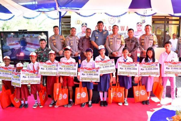 Kapolda NTT, Irjen Pol Daniel Tahi Monang Silitonga memberikan bantuan beasiswa kepada 10 orang pelajar berprestasi dari tingkat pendidikan dasar hingga menengah atas, Kamis (27/6/2024).