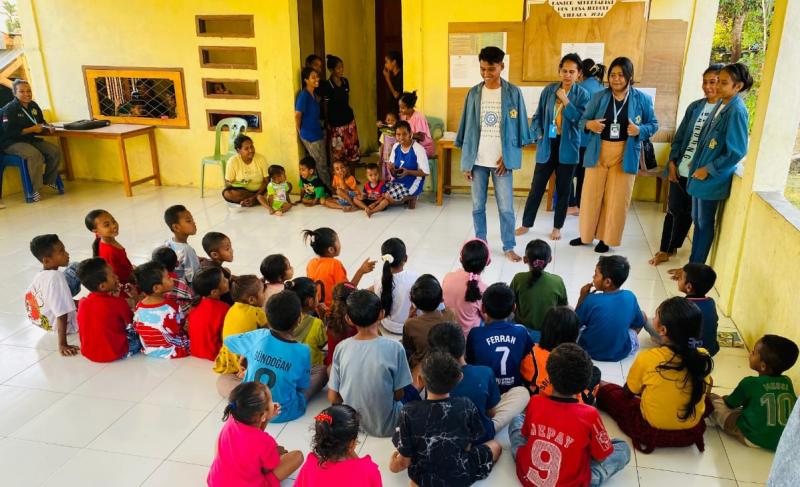 KATANTT.COM---Mahasiswa Kuliah Kerja Nyata Tematik (KKNT) dari Universitas Katolik Widya Mandira (UNWIRA) Kupang lakukan program membaca, menulis dan berhitung (calistung) bersama anak-anak di Desa Ileboli, Kecamatan Nagawutun, Kabupaten Lembata.