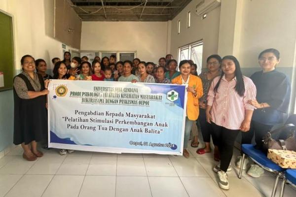 KATANTT.COM--Dosen dan mahasiswa program studi Psikologi, Fakultas Kesehatan Masyarakat (FKM), Universitas Nusa Cendana (Undana) Kupang, memberikan pelatihan stimulasi perkembangan anak pada orangtua dengan balita.