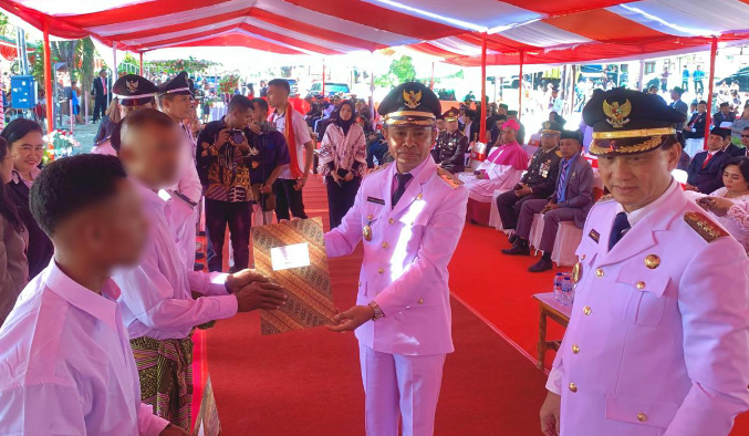 Penyerahan simbolis remisi umum I kepada 143 orang WBP Lapas Atambua di sela-sela upacara peringatan HUT ke-79 RI di lapangan umum Atambua, Kabupaten Belu, Sabtu (17/8/204)