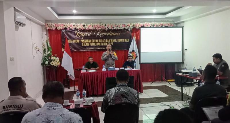 Kapolres Belu, AKBP Benny Miniani Arief saat hadiri Rapat Koordinasi pendaftaran pasangan calon Bupati dan Wakil Bupati Belu di Aula Hotel Matahari Atambua, Kabupaten Belu perbatasan RI-RDTL
