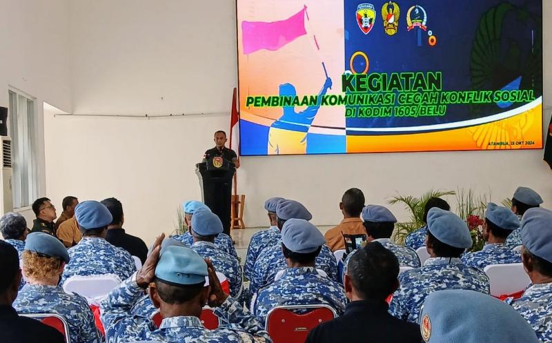 "Terima kasih sudah berkumpul di tempat ini untuk mengikuti kegiatan pembinaan komunikasi dalam rangka mencegah konflik sosial," ujar Andi dalam sambutannya saat kegiatan Binkom di gedung Betelalenok Atambua, Kabupaten Belu, Selasa (15/10/2024).