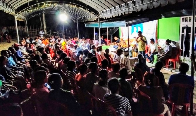 Kampanye paket Sahabat Sejati bersama puluhan warga di Dusun Halituku, Desa Naekasa, Kecamatan Tasifeto Barat, Kabupaten Belu perbatasan RI-RDTL, Kamis (17/10/2024) malam.