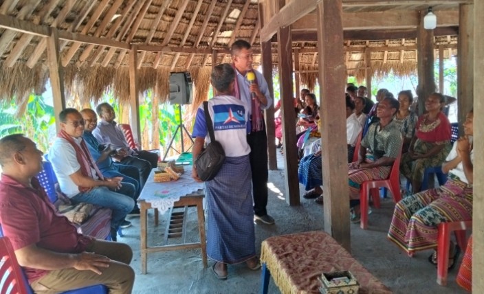 Nai Naitimu, Rudi Taolin saat kampanye dialogis paket Sahabat Sejati bersama warga Suku Fafiur di Sesekoe, Umanen, Kabupaten Belu perbatasan RI-RDTL, Kamis (24/10/2024).