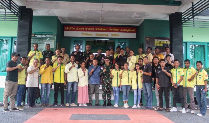 Dansatgas Yonif 741/GN, Letkol Inf. Gafur Thalib foto bersama Tokoh Pemuda Katolik Kabupaten Belu usai memberikan klarifikasi kesalahpahaman anggota dengan tokoh agama Katolik di Mako Satgas, Umanen, Kabupaten Belu perbatasan RI-RDTL, Kamis (24/10/2024).