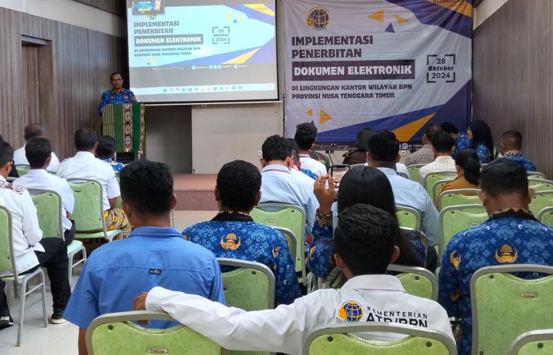 KATANTT.COM---Kantor Badan Pertanahan Nasional (BPN) Kabupaten Belu mengikuti launching Implementasi Layanan Elektronik dan Penerbitan Dokumen Elektronik wilayah Kantor BPN Provinsi NTT, Senin (28/10/2024).