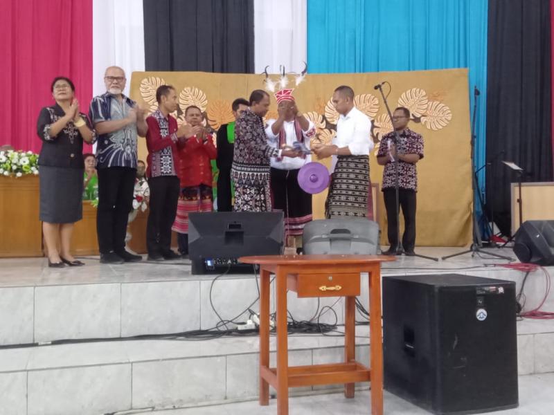 Ketua Sinode GMIT, Pendeta Samuel Pandie memukul gong sebagai tanda peluncuran 13 sekolah unggul sebagai bagian dari upaya untuk mengatasi tantangan pendidikan yang dihadapi oleh 581 sekolah GMIT.