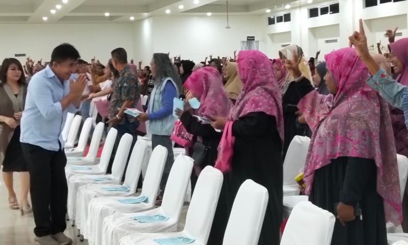 Calon Bupati Willy Lay saat memberikan salam kepada umat Muslim dalam pertemuan bersama paket Sahabat Sejati di Bahagia Ballroom Atambua, Kabupaten Belu perbatasan RI-RDTL, Minggu (10/11/2024) malam.