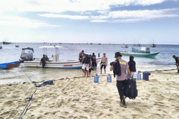 Sejumlah anggota Polri mulai melakukan pengamanan pendistribusian ke Kecamatan Ndao Nuse, Kabupaten Rote Ndao dilakukan pada Minggu 24/11/2024 melalui pelabuhan rakyat Nemberala, Kecamatan Rote Barat, Kabupaten Rote andao.