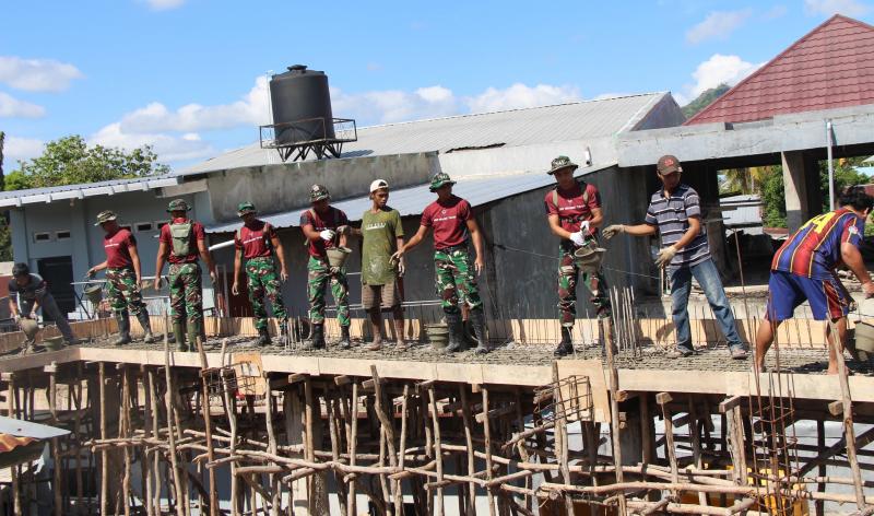 KATANTT.COM---Personel Satgas Pamtas RI-RDTL Sektor Timur Yonif 741/GN gotong royong bersama warga mengerjakan pembangunan Masjid An Nur di Kabupaten Belu.