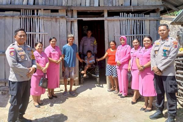 Ketua Bhayangkari Cabang Rote Ndao, Yuli Mardiono juga ikut memberikan bantuan sosial kepada keluarga anak disabilitas yang lain Malfen Yosua Nggause di kediamannya Desa Oebau, Kabupaten Rote Ndao.