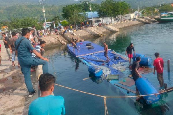 KM Nusantara tenggelam di Pelabuhan Dulionong, Kalabahi, pada Selasa (24/12/2024) pagi.