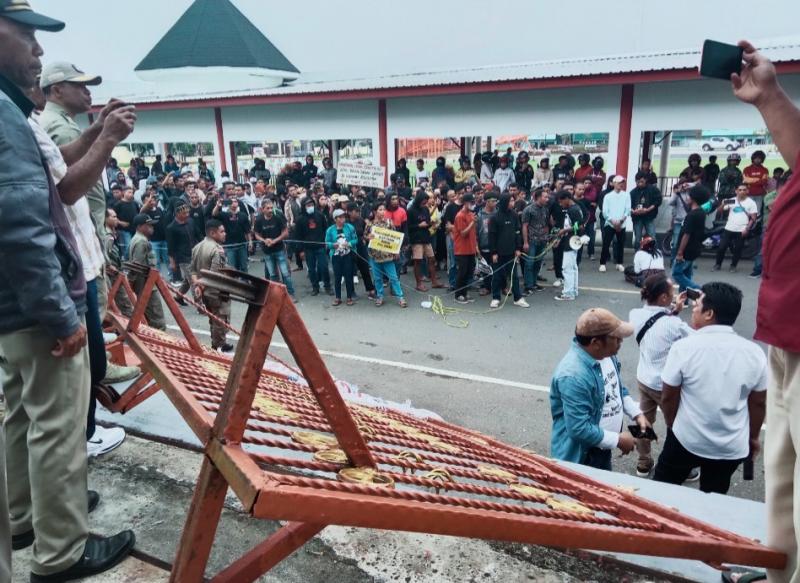 Kondisi pagar Kantor Bupati Manggarai usai aksi demonstrasi warga Poco leok