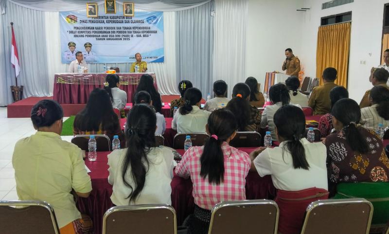 KATANTT.COM---Wakil Bupati Belu, Vicente Hornai Gonsalves membuka secara resmi kegiatan pengembangan karir pendidik dan teng kependidikan diklat kompetensi pengembangan diri pendidik dan tenaga kependidikan jenjang Pendidikan Anak Usia Dini (PAUD), Senin (5/5/2025).