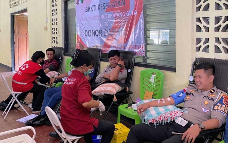 "Kami menyelenggarakan bakti kesehatan berupa aksi donor darah. Aksi ini untuk membantu PMI dalam menyediakan darah bagi masyarakat yang membutuhkan, sekaligus menyambut Hari Bhayangkara," jelasnya.
