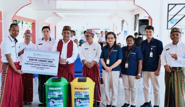 KATANTT.COM---Upaya menjaga kebersihan di ruang publik kembali mendapat dukungan nyata. Badan Penyelenggara Jaminan Sosial (BPJS) Kesehatan Cabang Ende menyerahkan 12 unit tong sampah kepada Pemerintah Kabupaten Manggarai, Kamis (10/7/2025). Bantuan ini secara khusus akan ditempatkan di Natas Labar Motang Rua, salah satu ikon kebanggaan Kota Ruteng.