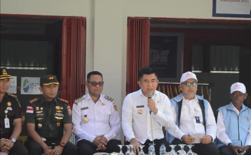 Bupati Belu, Willy Lay saat memberikan arahan dalam kegiatan launcing serentak 80 ribu Kopdes Merah Putih secara daring di Desa Fatuketi, Kabupaten Belu perbatasan, Senin (21/7/2015).