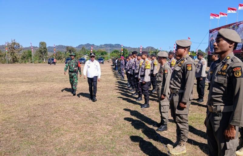 Wabup Belu, Vicente Hornay saat memeriksa pasukan dalam upacara pembukaan TMMD ke-125 di Desa Nakea, Kabupaten Belu perbatasan RI-RDTL, Rabu (23/5/2025)