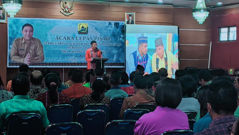 KATANTT.COM---Ruteng, Manggarai, pada Jumat sore (1/8/2025), cahaya matahari senja yang menyusup lewat jendela kaca Aula Ranaka, Kantor Bupati Manggarai, seolah ikut menyaksikan momen mengharukan: sebuah perpisahan, bukan karena perbedaan, tetapi karena usia pengabdian yang telah genap. Di hadapan para kolega, pimpinan daerah, dan para ASN, Drs.Jahang Fansi Aldus, Sekretaris Daerah (Sekda) Manggarai periode 2020–2025, resmi menanggalkan tugas dan jabatannya. Ia memasuki masa purna bakti, dengan senyum tenang, seolah berkata: Acara Lepas Pisah Sekda Manggarai Periode 2020-2025, Drs.Jahang Fansi Aldus