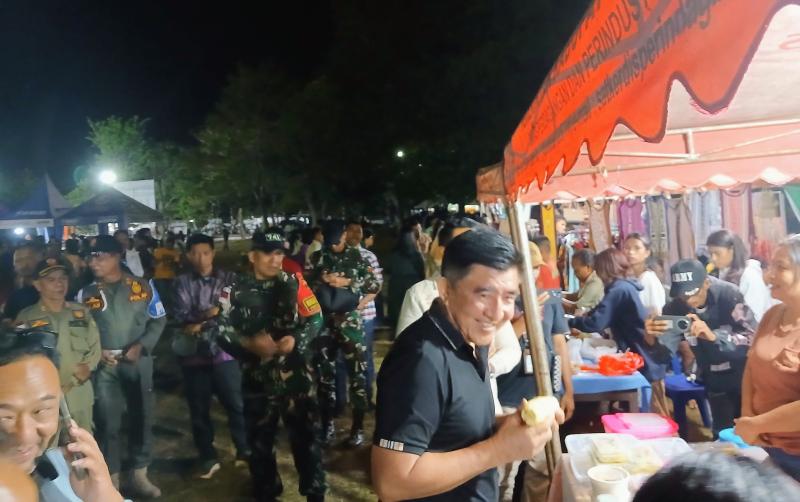 Bupati Willy Lay saat tinjau lapak pameran ekonomi UMKM dalam kegiatan semarak kemerdekaan di lapangan umum Atambua, Kabupaten Belu perbatasan RI-RDTL, Sabtu (2/8/2025) malam.