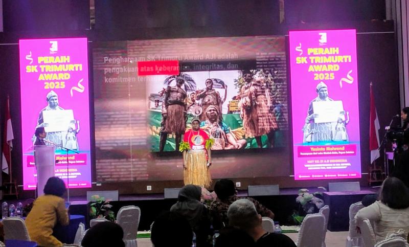 Dalam perayaan kali ini, AJI Indonesia menganugerahkan SK Trimurti Award 2025 kepada Yasinta Moiwend, 60 tahun, perempuan dari suku Marind-Anim, Papua Selatan. Sosok yang gigih memperjuangkan hak-hak masyarakat adat dalam mempertahankan tanah ulayatnya dari proyek penghancuran tanah adat Papua. Termasuk, Proyek Strategis Nasional (PSN) food estate di Merauke.