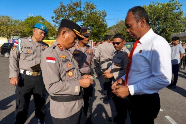 Wakapolresta AKBP Anak Agung Gde Anom Wirata dan Kasi Propam Polresta Kupang Kota Ipda Leonardus Dima memeriksa tampang dan kelengkapan administrasi anggota usai apel pagi