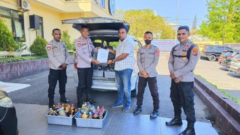 Sejumlah barang temuan minuman keras (Miras) ilegal jenis sopi dan hoka wisky diserahkan Polsubsektor Pelabuhan Tenau Kupang ke Satuan Resnarkoba Polresta Kupang Kota untuk proses lebih lanjut. Penyerahan dilakukan pada Jumat (3/10/2025) di Sat Narkoba Polresta Kupang Kota.