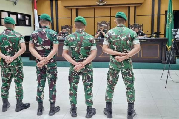 "Dijatuhi hukum pidana pokok pidana 6 tahun 6 bulan karena keempat terdakwa terbukti secara sah dan meyakinkan melakukan penganiayaan berat secara bersama-sama yang mengakibatkan kematian, di bawah pengaruh minuman keras (miras). Perbuatan mereka melanggar Pasal 131 ayat (1) jo ayat (3) KUHPM jo Pasal 55 ayat (1) ke-1 KUHP," ujarnya dalam putusan yang dibacakan pada Rabu petang. Empat terdakwa juga diwajibkan membayar restitusi sebesar Rp 544.625.070