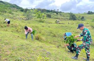 Satgas Yonif 741/GN, Dinas Kehutanan Belu dan Warga Tanam 20.000 Bibit Kemiri