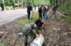 Sambut Hari Juang TNI AD ke-79, Kodim Belu Bersihkan Sampah di Dua Jalur Nenuk
