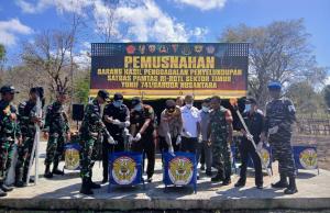 Sambangi Satgas Yonif 741/GN, Kasdam Udayana Tinjau Barang Bukti Hasil Galdup Selama 6 Bertugas